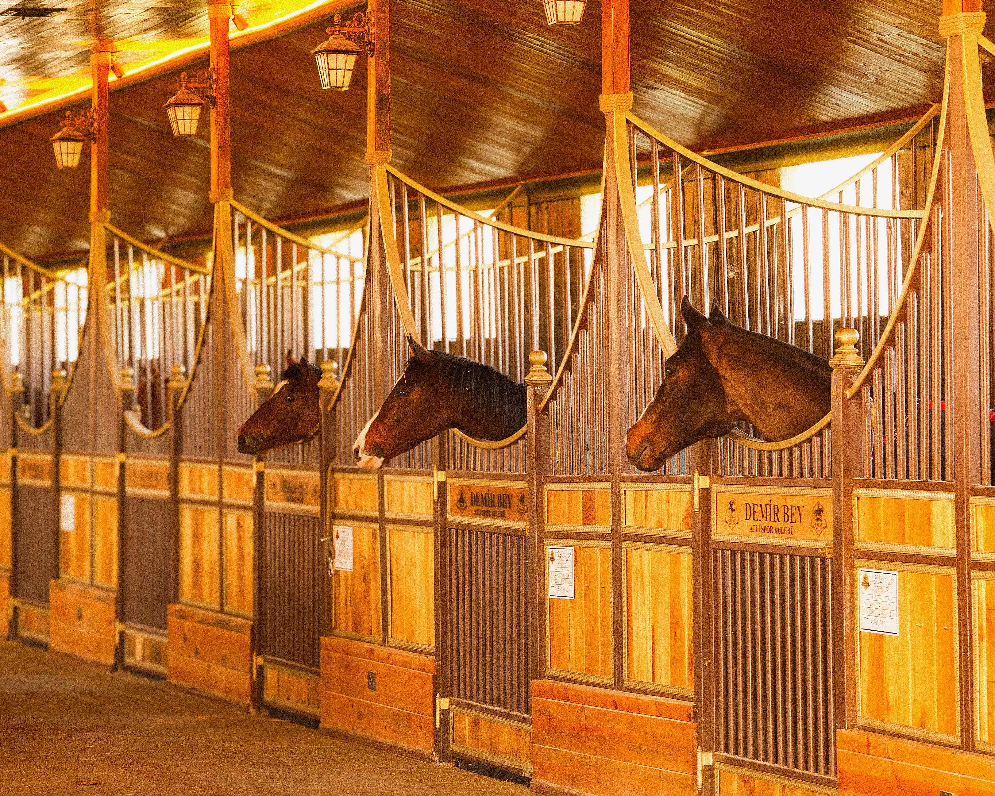 Azerbaycan'daki Binicilik Kulübü, atların sağlığı ve huzuru için özel yaşam alanları sunmaktadır.